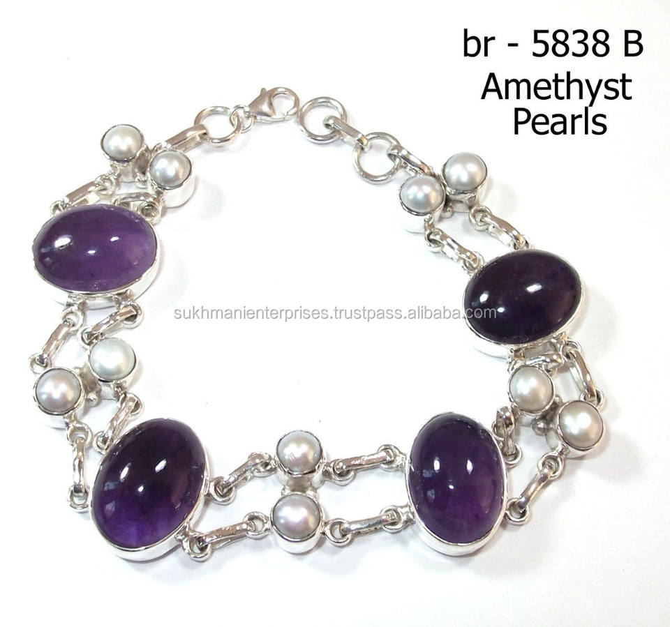 สร้อยข้อมือพลอยอเมทิสต์เครื่องประดับเงินแท้925