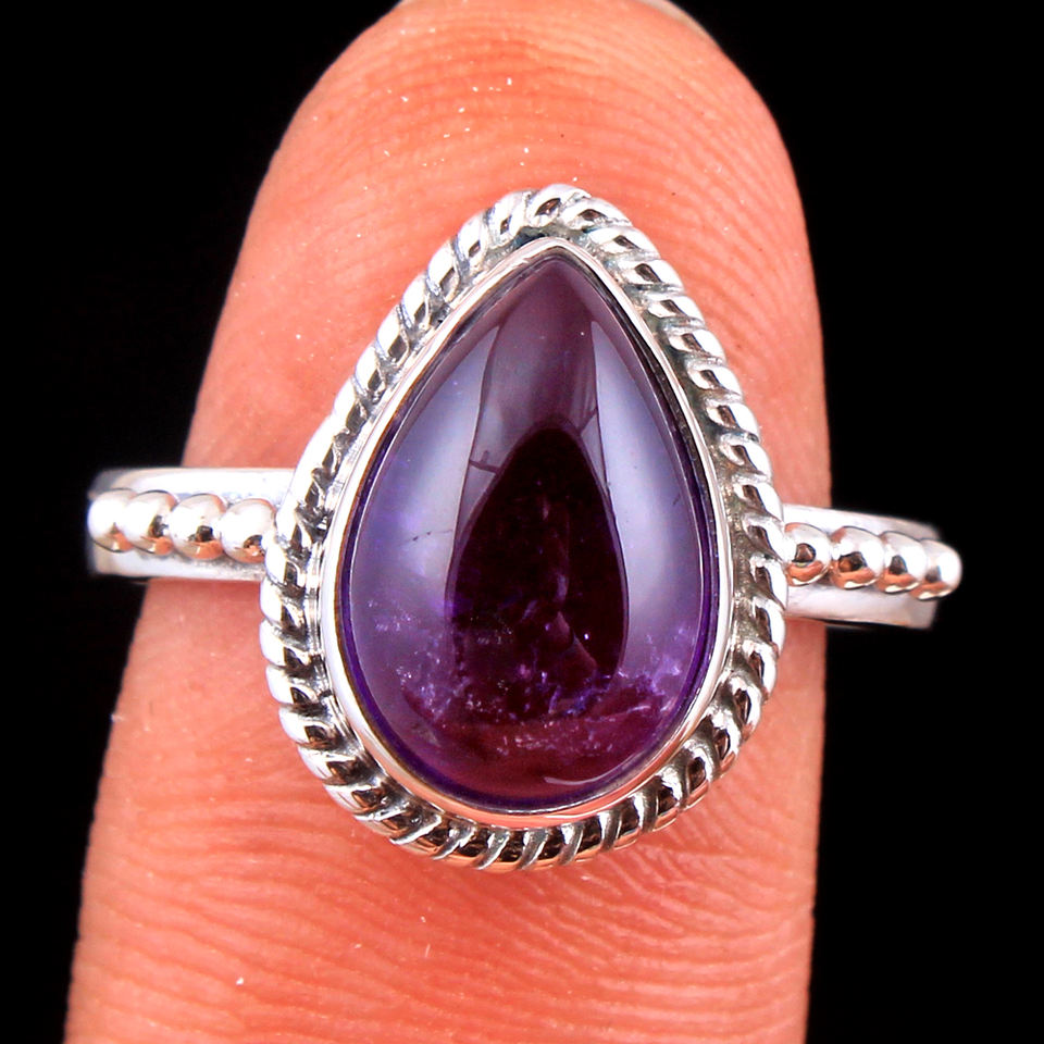 แหวนอเมทิสต์ทำมือแข็ง925แข็งเงินสเตอร์ลิงหมั้นแหวนค็อกเทลคลาสสิกเครื่องประดับชั้นดี
