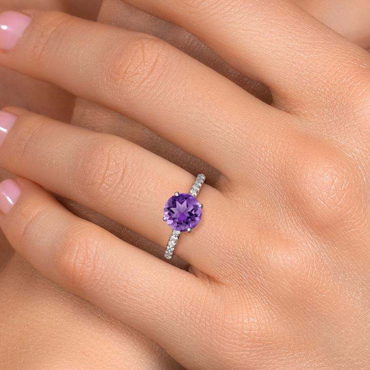 Natural Amethyst Prong Setting Engagement Wedding Ring 925 Silver Gold Plated Luxury Certified February Birthstone Gift Her