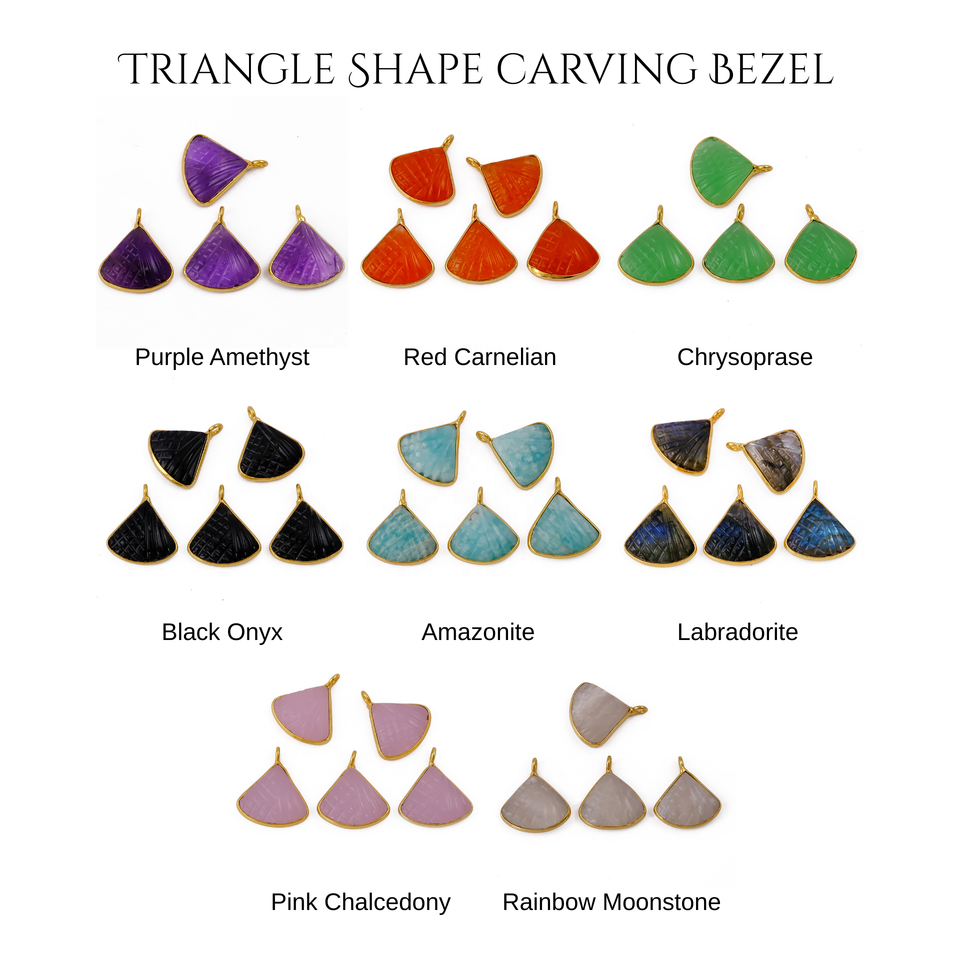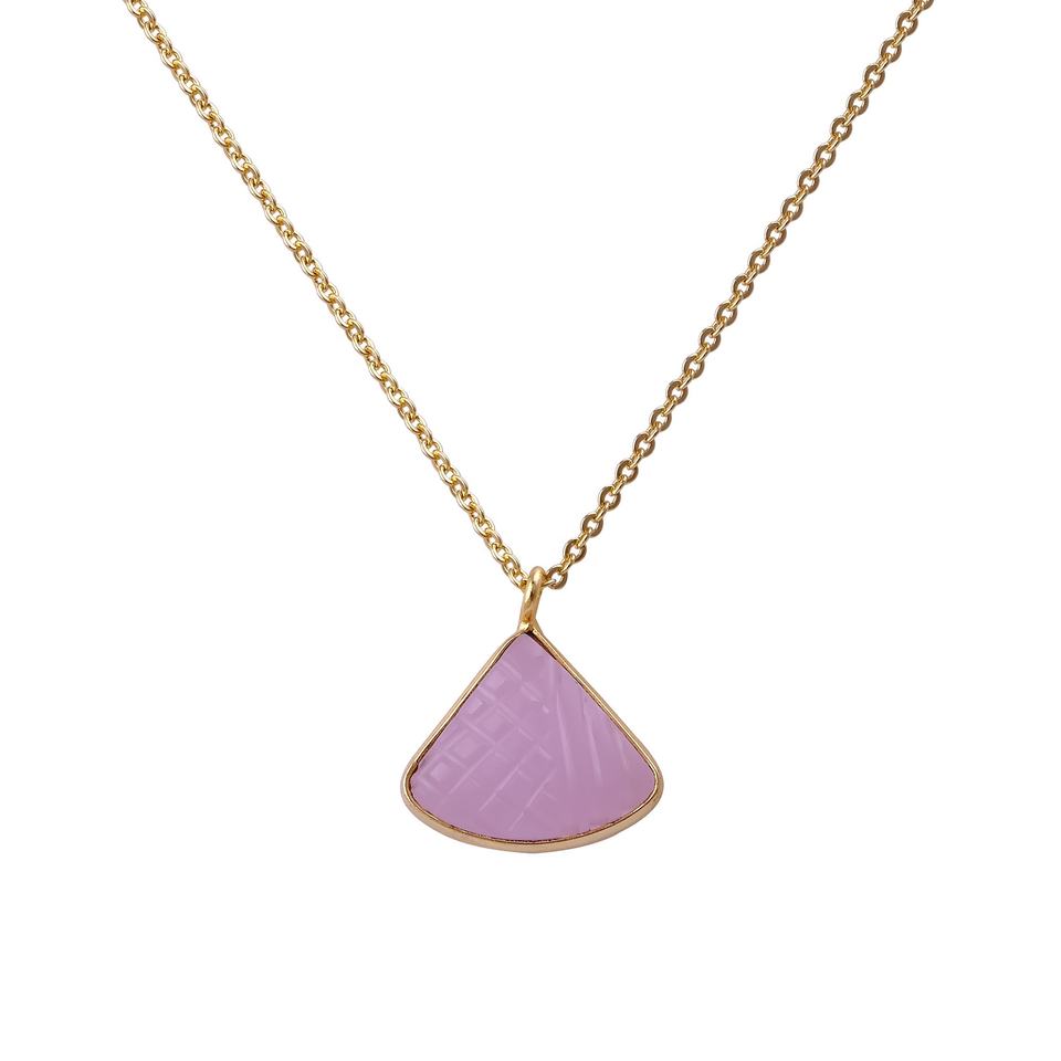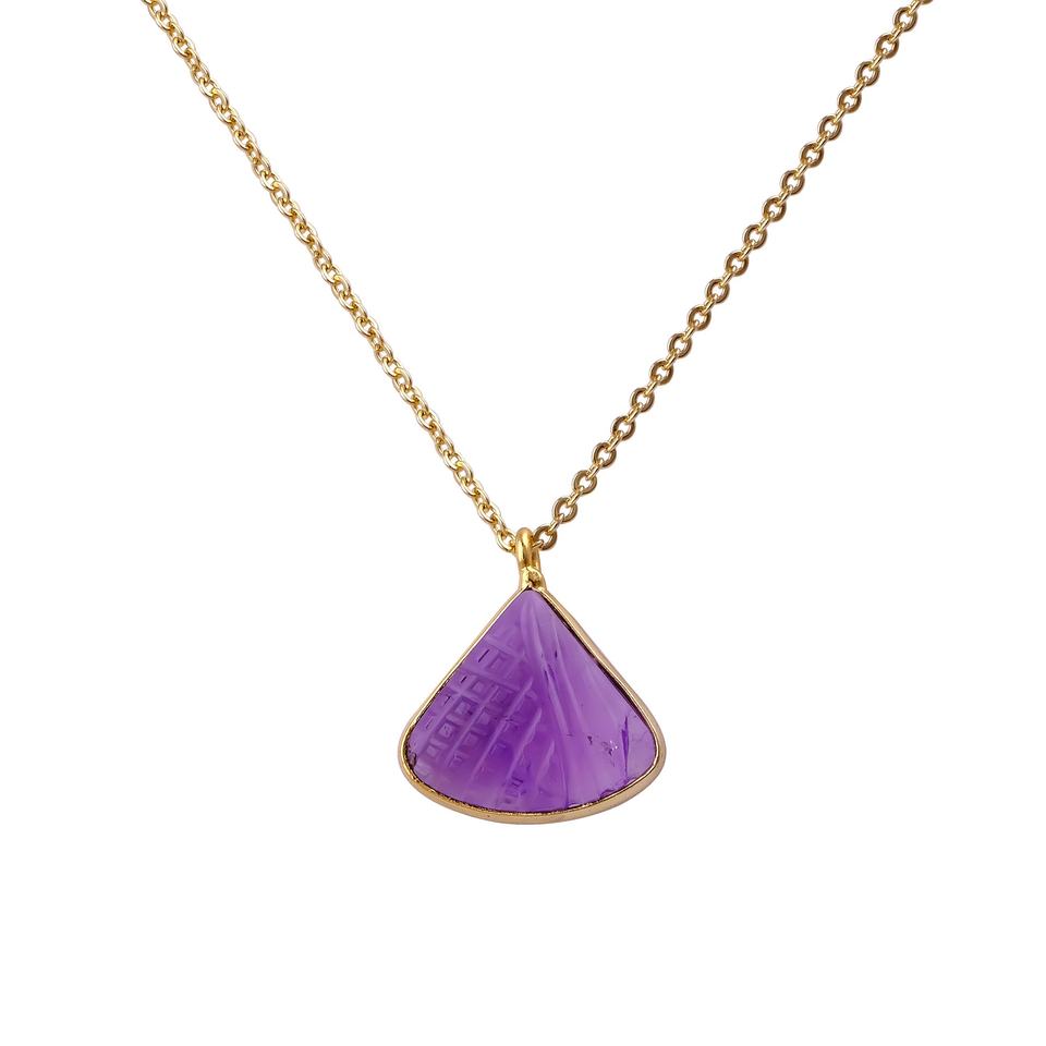 สร้อยคอจี้รูปสามเหลี่ยมแกะสลักด้วยมือจากอเมทิสต์ ประดับพลอยแบบฝังขอบ ตัวเรือนทองเหลืองชุบทอง ดีไซน์ทันสมัย