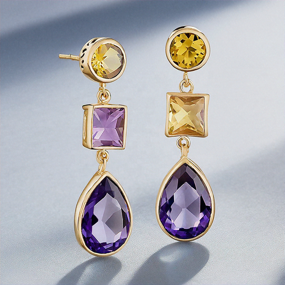Amethyst ต่างหูเงินสเตอริโอ925น้ำแชมเปญชุบทองต่างหูหยดน้ำ