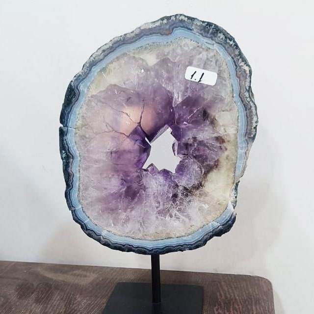 หินอเมทิสต์คลัสเตอร์ธรรมชาติพร้อมขาตั้งโลหะ