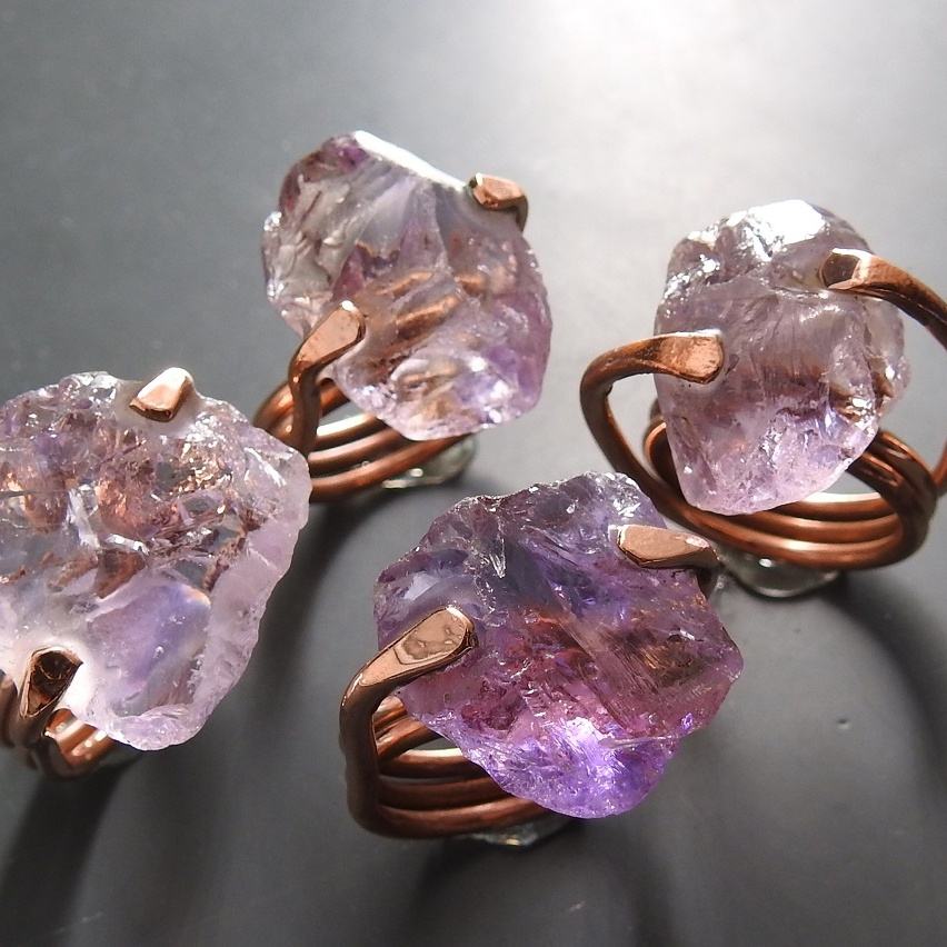 อเมทิสต์ พลอยดิบธรรมชาติ หุ้มทองบนทองแดง ปรับขนาดได้ ของขวัญสำหรับเธอ เครื่องประดับแฟชั่น แบบเดียวเท่านั้น