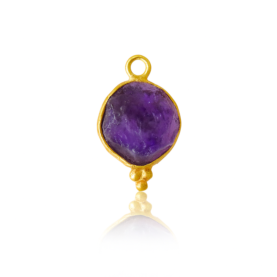 จี้พลอยอเมทิสต์สีทองแบบดิบ925เวอร์เมลชุดฝาสีเงินสเตอร์ลิงมีสไตล์ของขวัญเครื่องประดับประกันตัวเดี่ยวสำหรับเธอสำหรับเด็ก