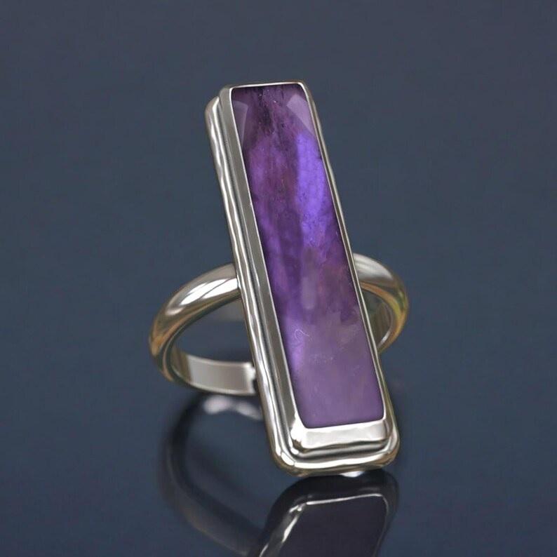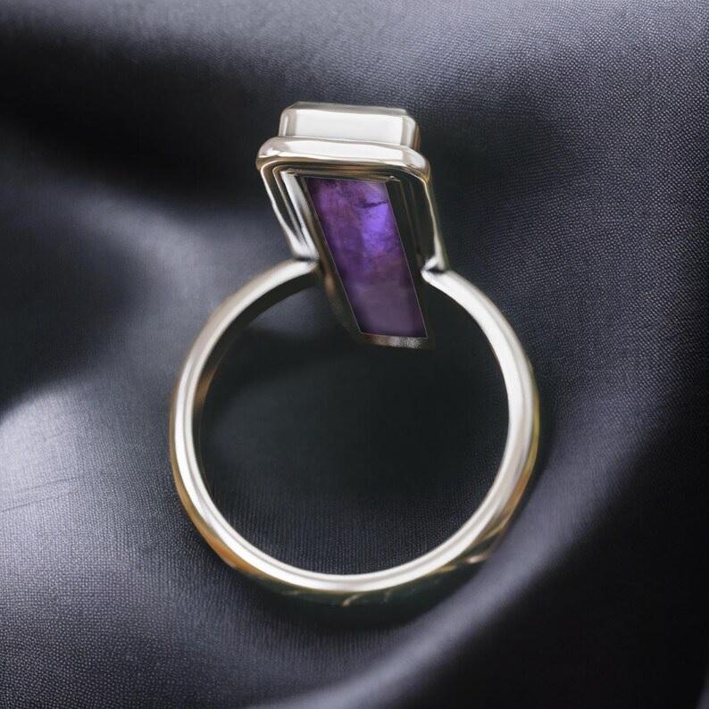 แหวนพลอยสีม่วงทำด้วยมือสำหรับผู้หญิงแหวนสี่เหลี่ยมพลอย925อเมทิสต์สำหรับผู้หญิง