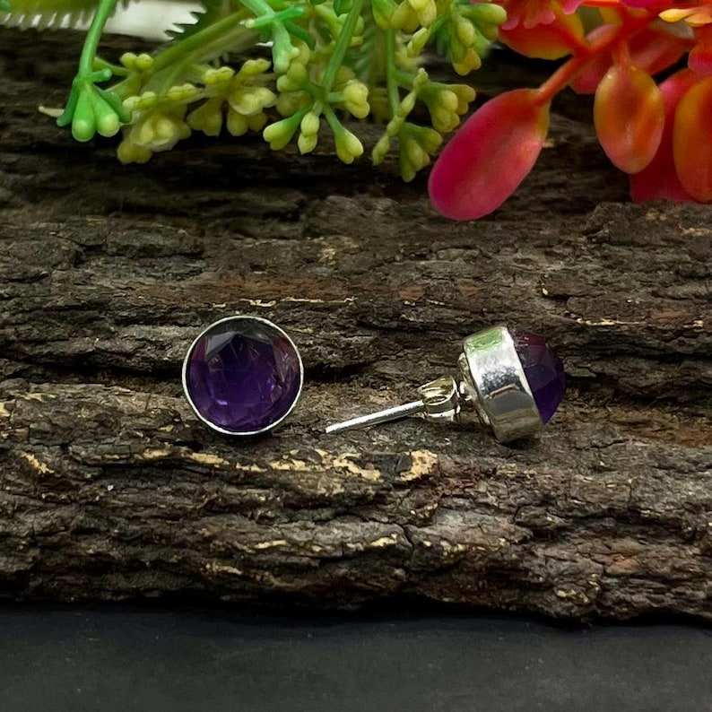 ต่างหูเงินชุบทองประดับอเมทิสต์ทรงโรสคัท งานแฮนด์เมด ดีไซน์เรียบหรู สไตล์โบโฮ รูปทรงกลม เครื่องประดับอัญมณีมินิมอล ของขวัญสำหรับเธอ