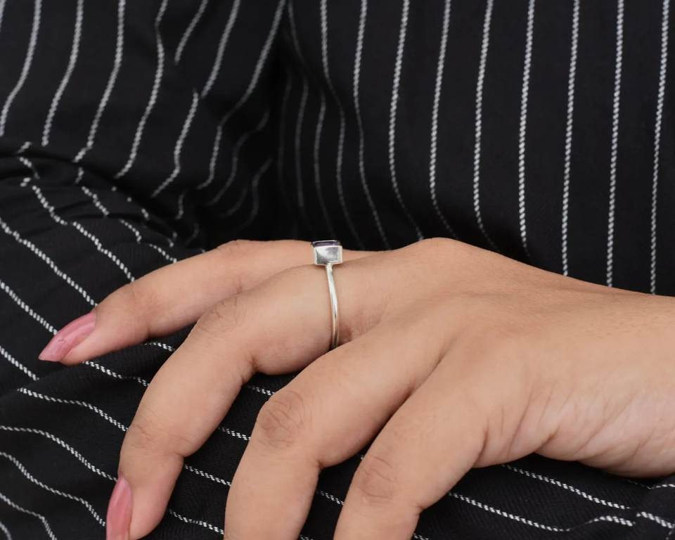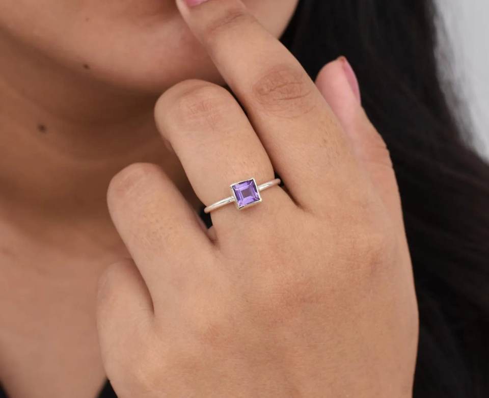 แหวนเงินอเมทิสต์ทรงกลมสีม่วงเรียงซ้อนกัน925อัญมณีทำด้วยมือเครื่องประดับเงินแบรนด์สั่งซื้อจำนวนมาก