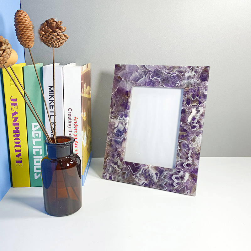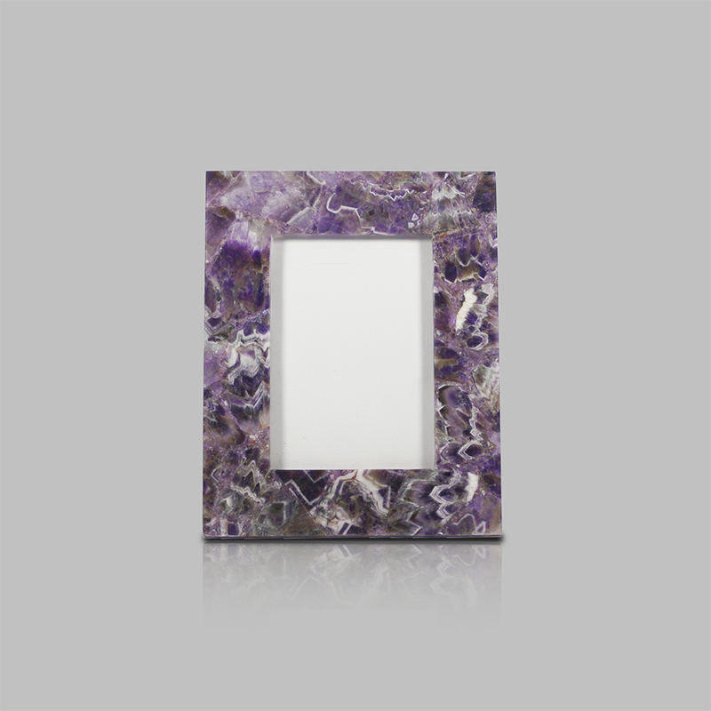 กรอบรูปตกแต่งสไตล์โมเดิร์นทำจากหินอเมทิสต์รักษ์โลก พร้อมลายแกะสลักด้วยมือ สำหรับงานหมั้น
