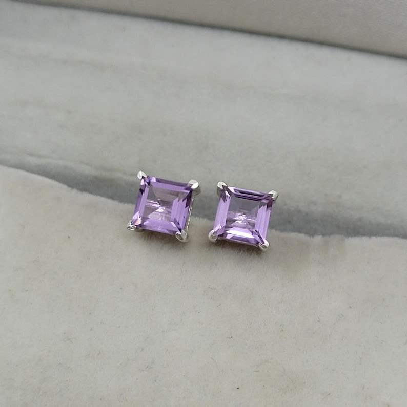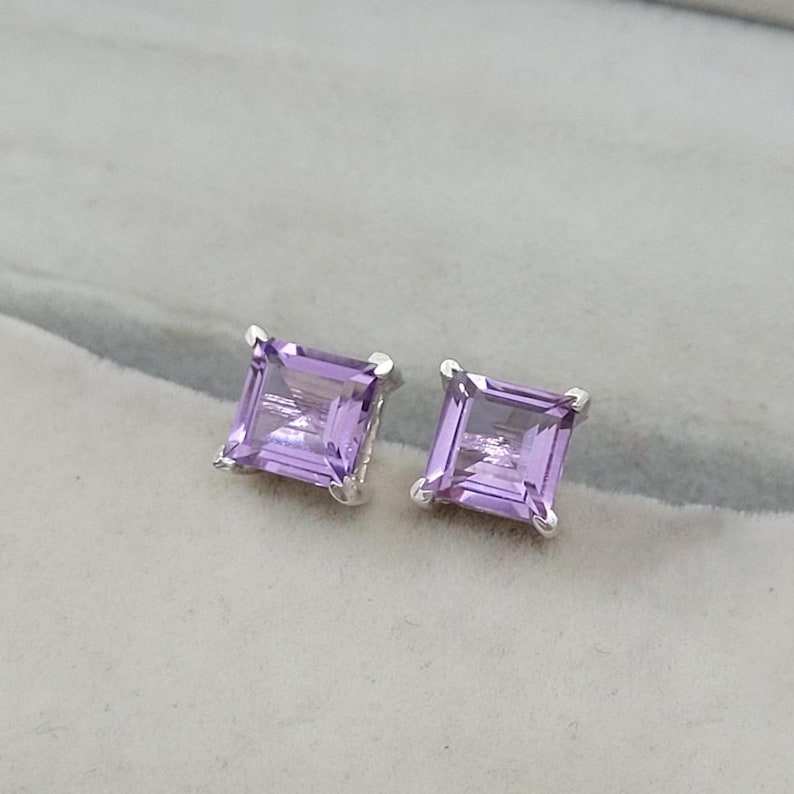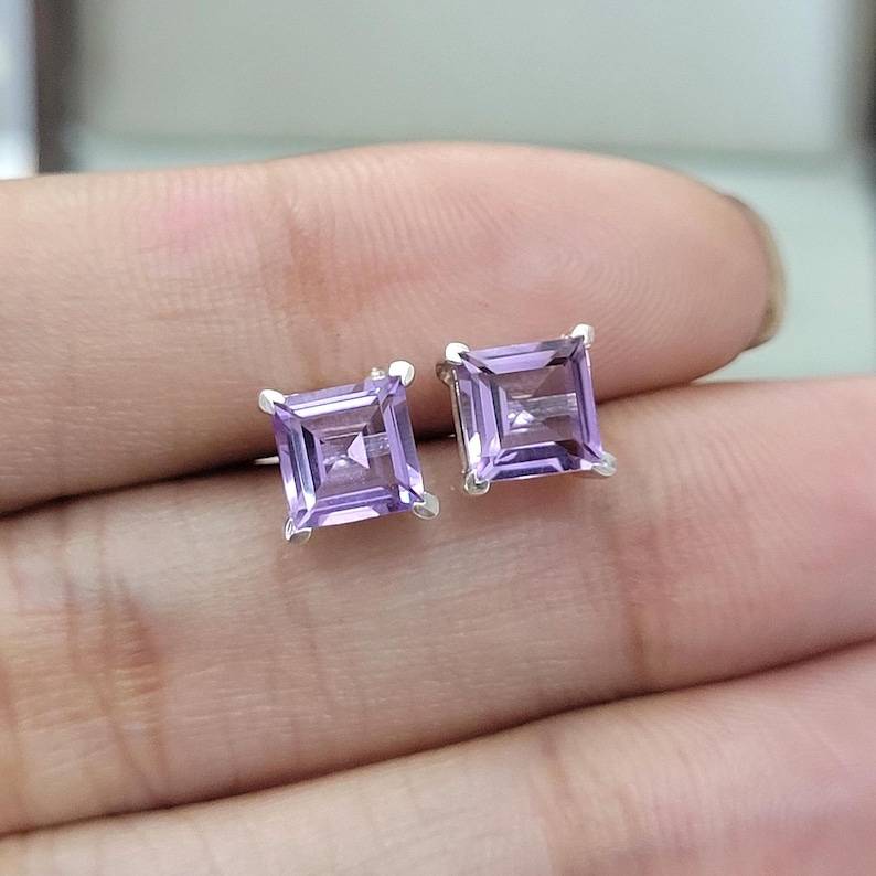 ต่างหูอเมทิสต์เงินสเตอร์ลิงทรงสี่เหลี่ยม หินประจำเดือนกุมภาพันธ์ เครื่องประดับหรูหรา ของขวัญสำหรับผู้หญิงและเด็กผู้หญิง