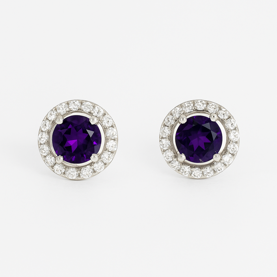 ต่างหูอะมีทิสต์ประดับเพชร CZ ทรงรัศมี ชุบโรเดียม - เครื่องประดับสำหรับงานหมั้น งานแต่งงาน งานฉลองครบรอบ และของขวัญสำหรับเด็ก สไตล์โรแมนติก