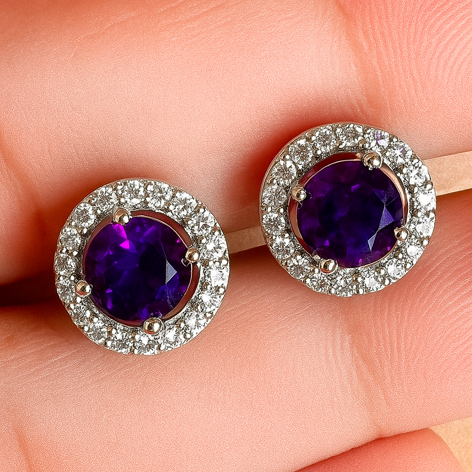 อเมทิสต์ (ตัด):ตัวหนีบรูปทรงกลมขนาด 6 มม. (2 ชิ้น)