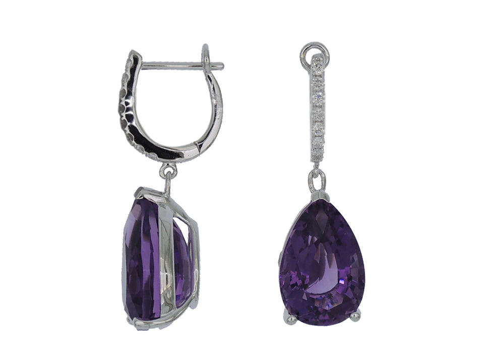 ต่างหูห้อยทรงหยดน้ำประดับพลอยอเมทิสต์และเพชร ทอง 18K ทองคำขาว เครื่องประดับหรูหราสำหรับผู้หญิง