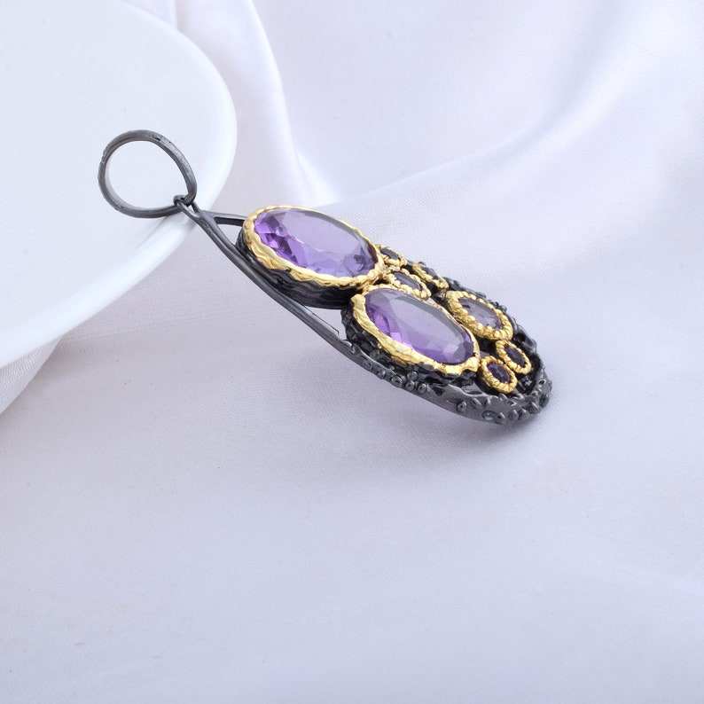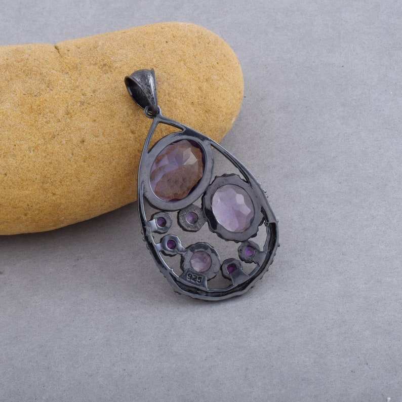 สร้อยคอหยดน้ำตาอเมทิสต์925เงินสเตอร์ลิงจี้โรเดียมสีดำเครื่องประดับอัญมณีอัญมณีอัญมณีสำหรับผู้หญิงสร้อยคอดีไซน์ทันสมัย