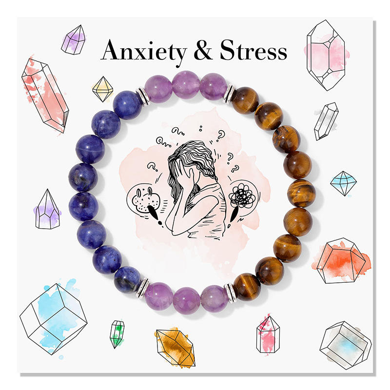 สร้อยข้อมือตาเสืออเมทิสต์บลูสโตน8มม. สร้อยข้อมือโยคะเพื่อความเครียด