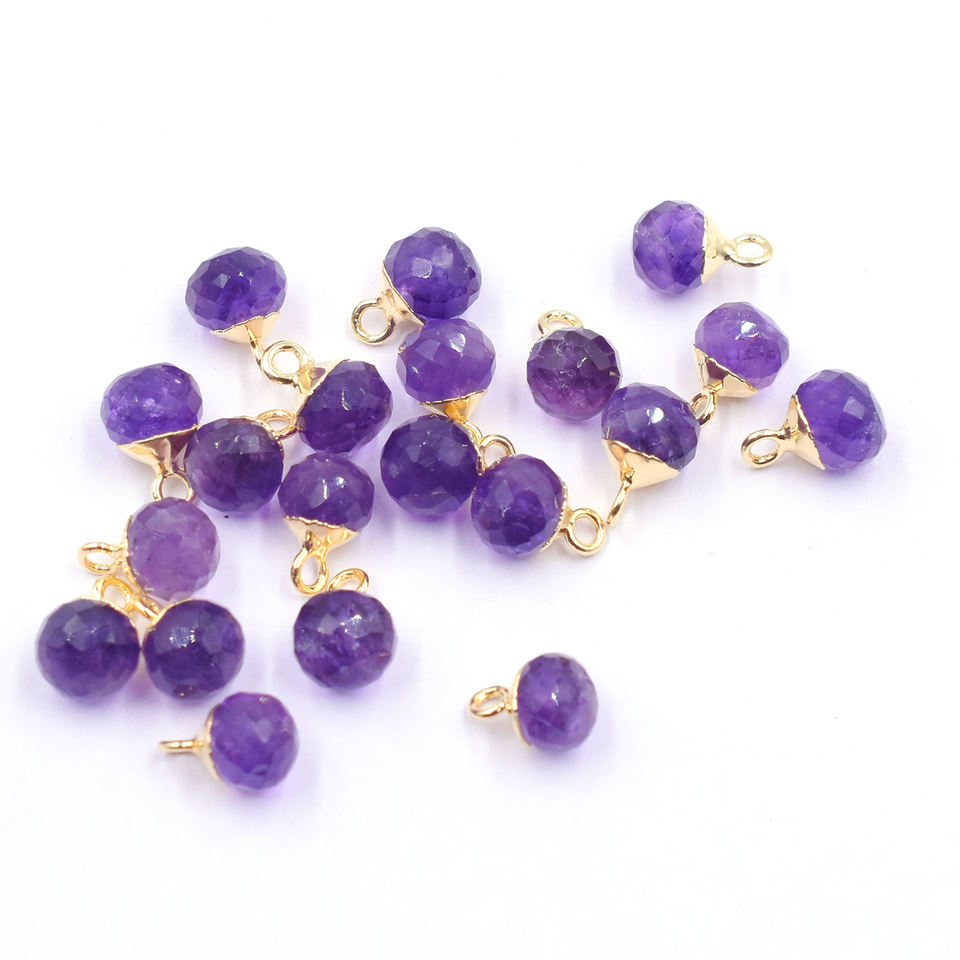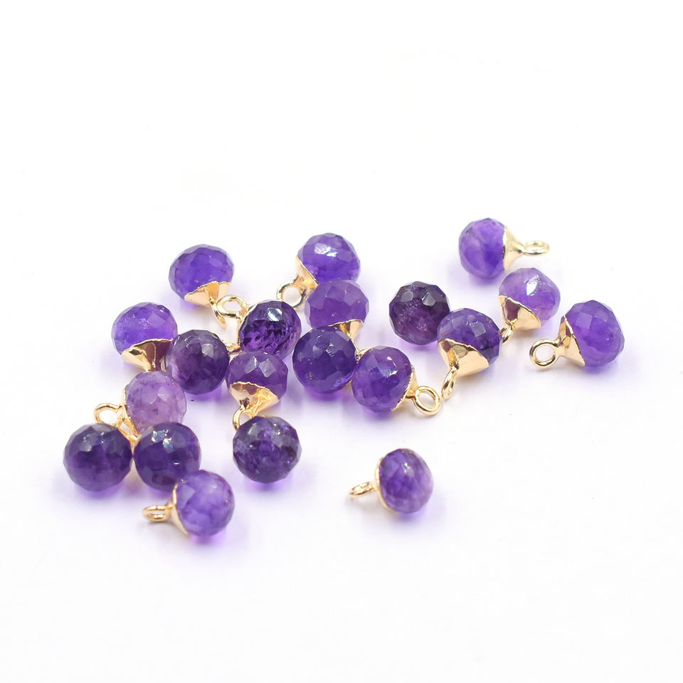 จี้ทรงกลมชุบทอง 18K ประดับพลอยอเมทิสต์ ขนาด 10-12 มม. พร้อมห่วงสำหรับทำเครื่องประดับ