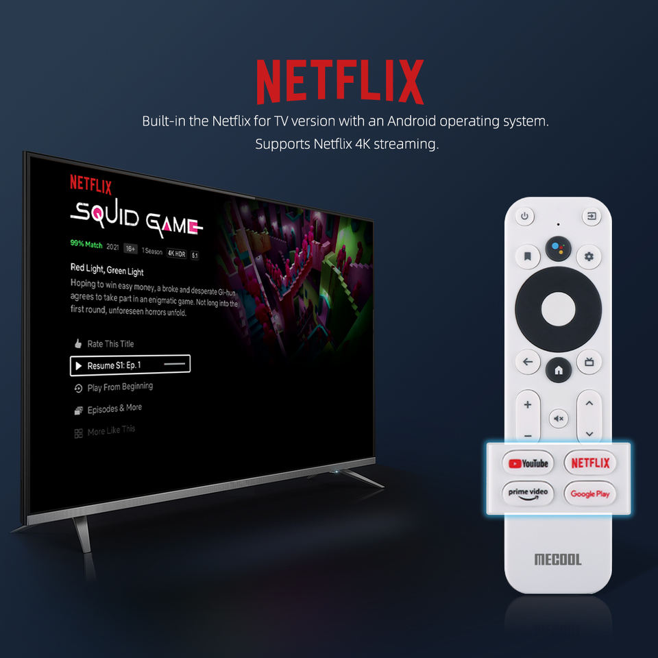 Amlogic แท่งไฟทีวี S805X2 1 + 8G,4K FHD แอนดรอยด์11สติ๊กทีวีพร้อม Google Assistant และรีโมทคอนโทรล