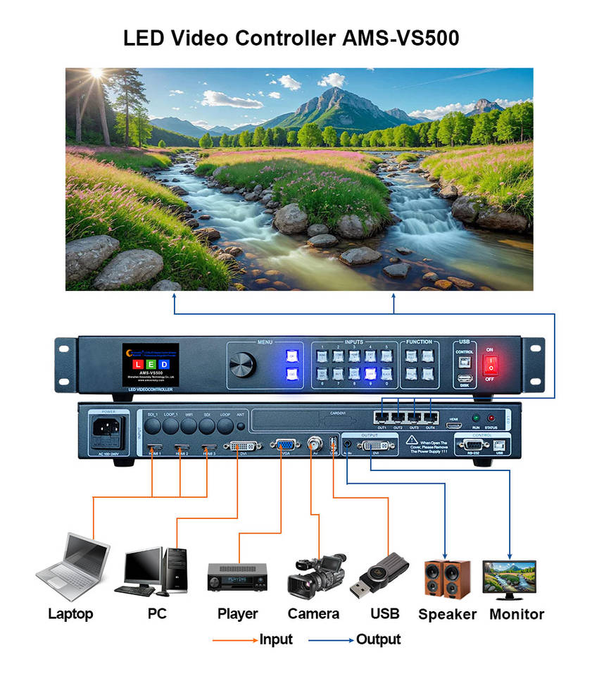 Amoonsky ตัวควบคุมวิดีโอแบบ All In One VS500การส่งการ์ด MSD600แบบบูรณาการพร้อมเอาต์พุตอีเธอร์เน็ต RJ45 4ตัว
