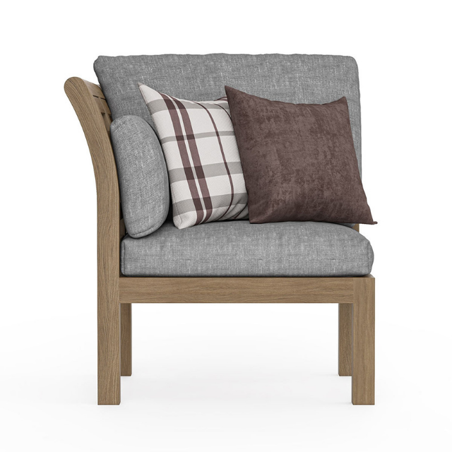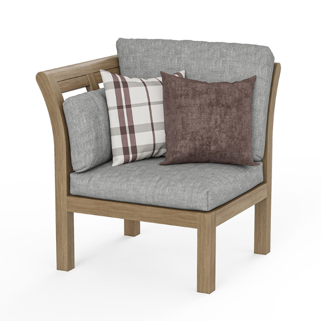 Amstetten ชุดโซฟาเข้ามุมเข้ามุมไม้สักแนวชนบทพร้อมชุดโซฟาผ้าหุ้มเบาะ
