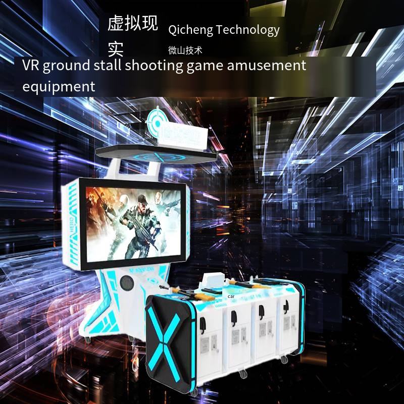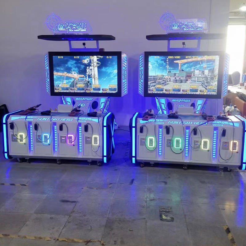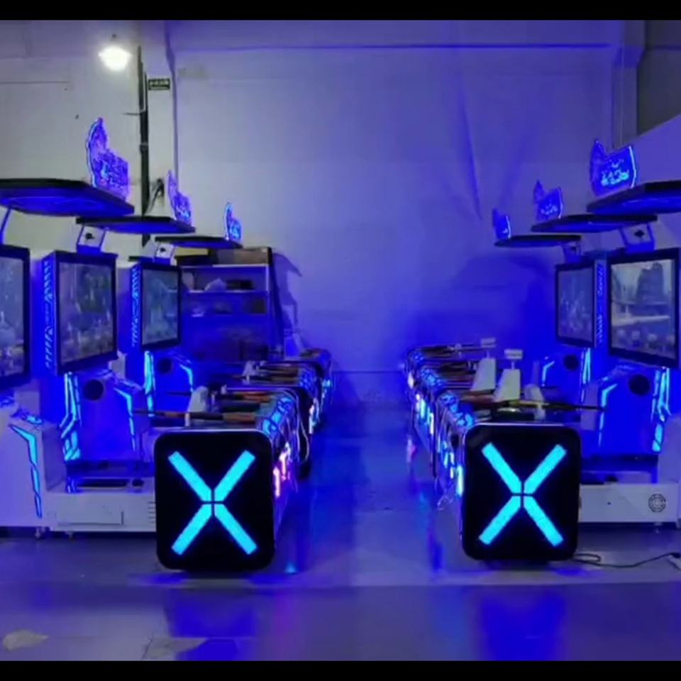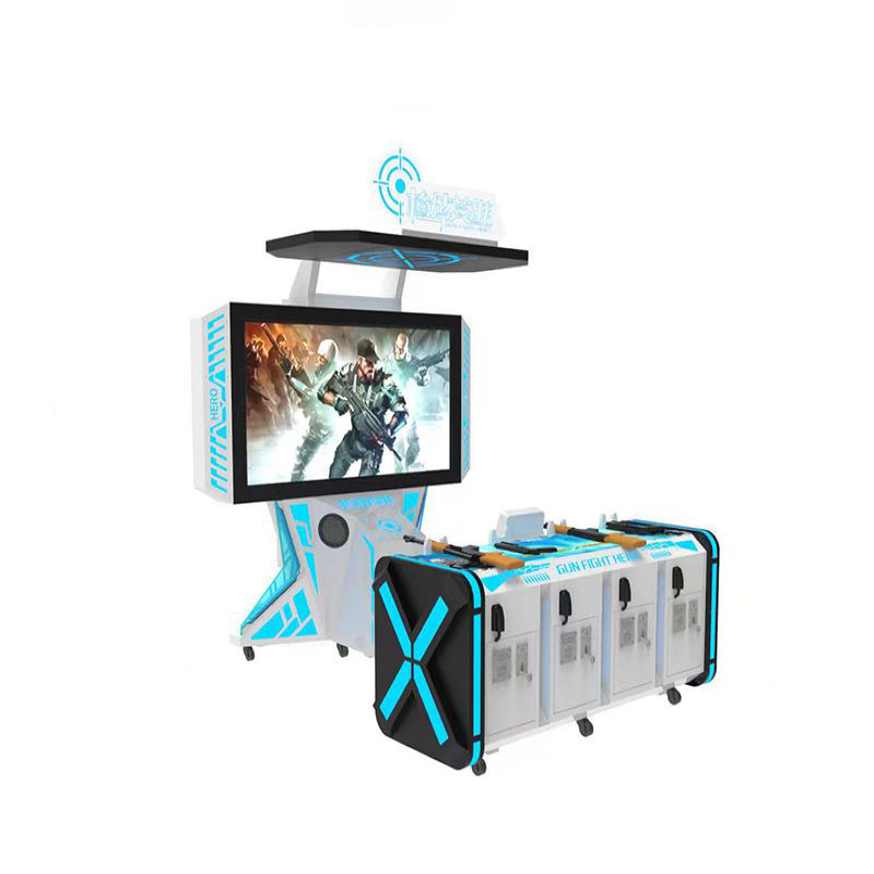 เครื่องเล่นเกมยิงปืน VR แบบหยอดเหรียญ 4 ที่นั่ง สำหรับในร่ม โครงสร้างโลหะและไฟเบอร์กลาส