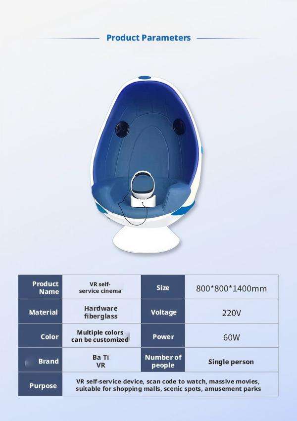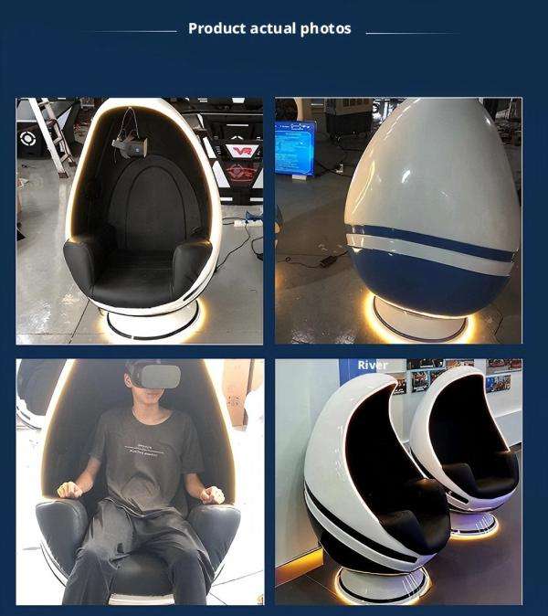 เครื่องจำลองความเป็นจริงเสมือน ยี่ห้อ JH รุ่น Steel ให้ประสบการณ์การเล่นแบบ 360 องศา โรงภาพยนตร์ 9D แบบที่นั่งเดี่ยว รูปทรงไข่ สำหรับห้างสรรพสินค้าและบ้าน