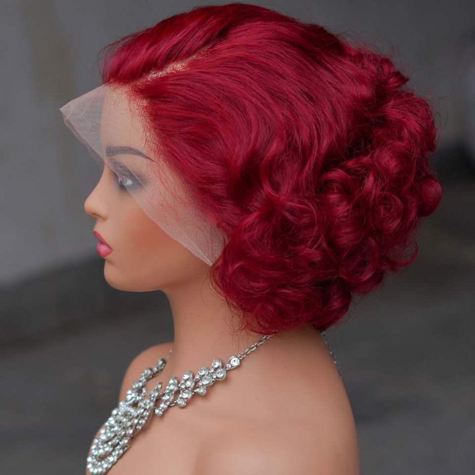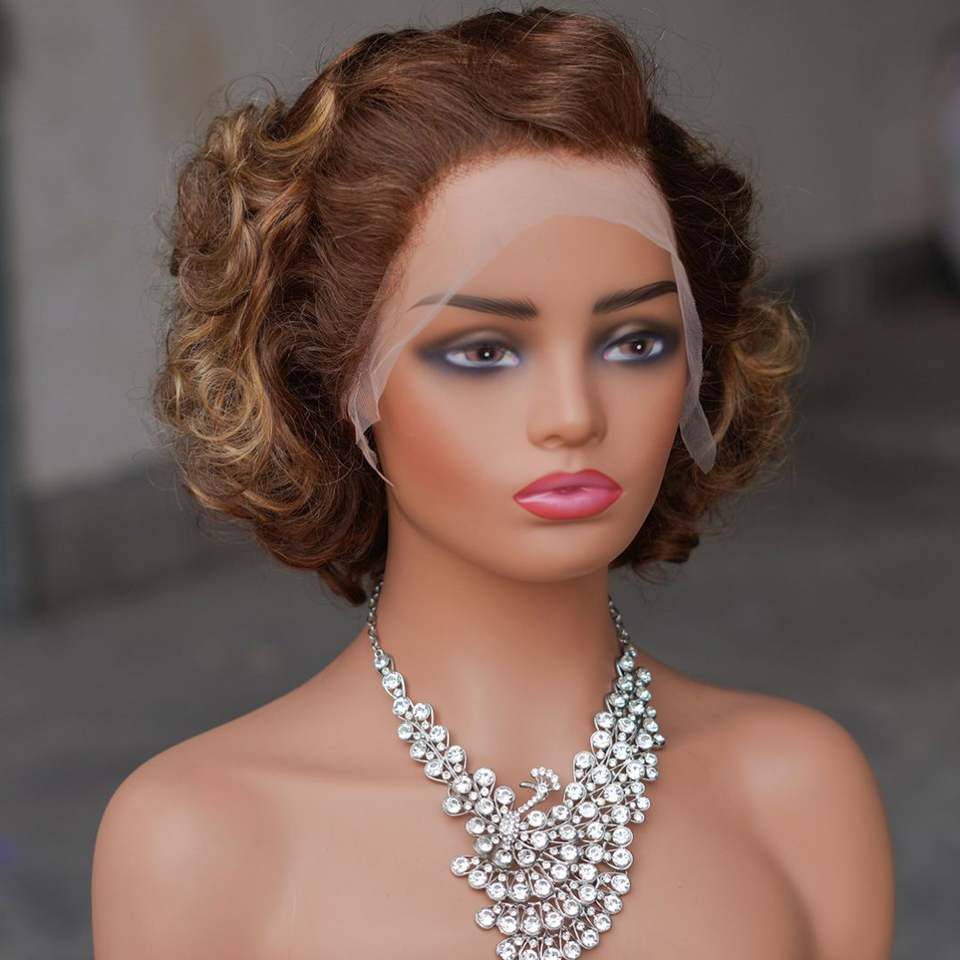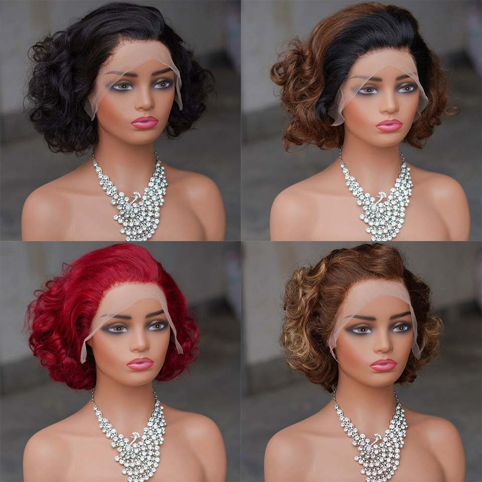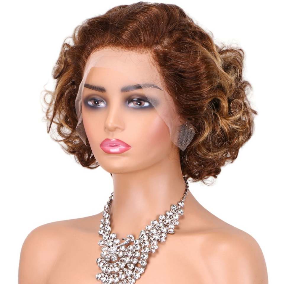 วิกผมแท้ Amygirl 13x4 แบบลูกไม้ด้านหน้าสไตล์ฝรั่งเศส ลอนคลายสั้น ความหนาแน่น 250% ผมแท้ Remy สีดำธรรมชาติ 100% ผมบราซิลบริสุทธิ์ 1 ชิ้น