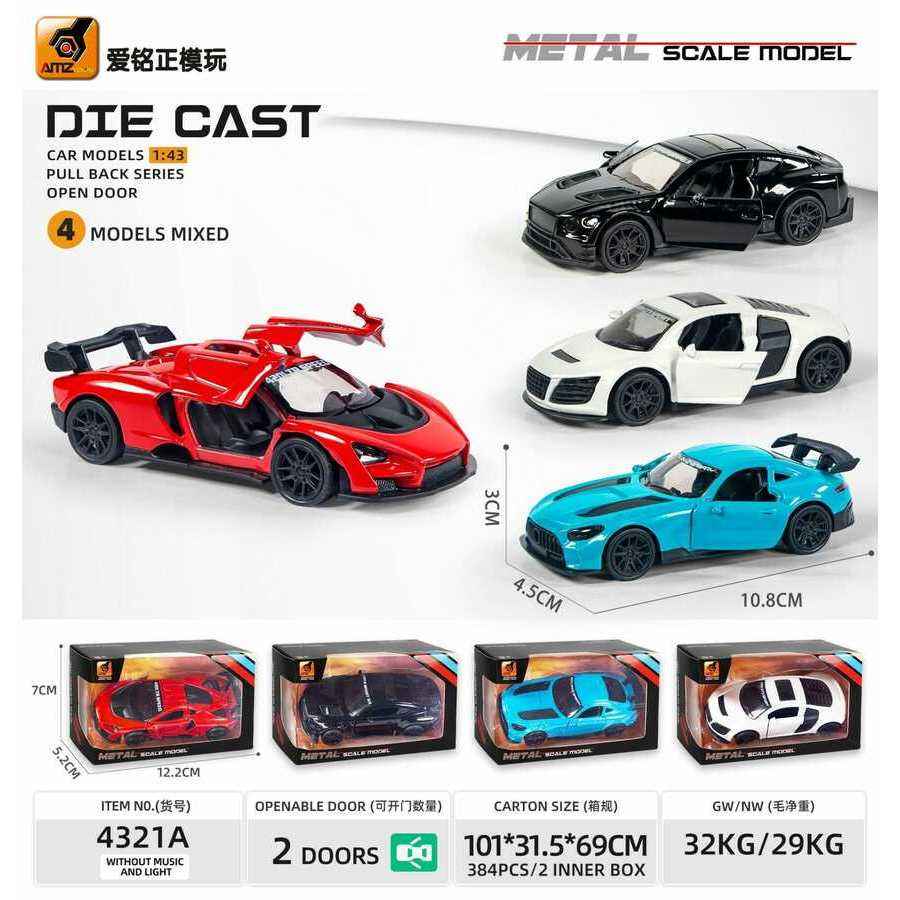 รถโมเดลอัลลอยด์ Amz อัตราส่วน 1:43 แบบดึงถอยหลัง ประตูเปิดได้ ของเล่นสำหรับเด็กอายุ 5-7 ปี ของเล่นโลหะผสมสำหรับเด็กผู้ชายและเด็กผู้หญิง รุ่น 4321A