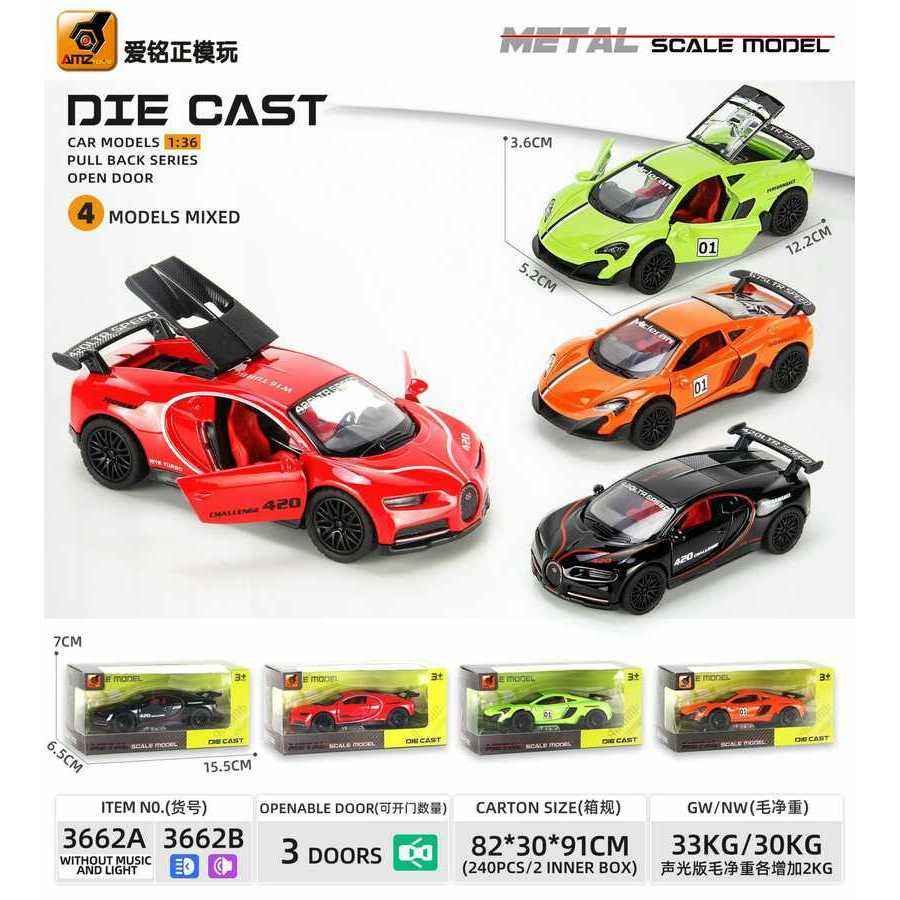 รถโมเดลอัลลอยด์ Amz ขนาด 1:36 ของเล่นรถแบบดึงถอยหลัง สำหรับเด็กอายุ 8-13 ปี รุ่น 3662A