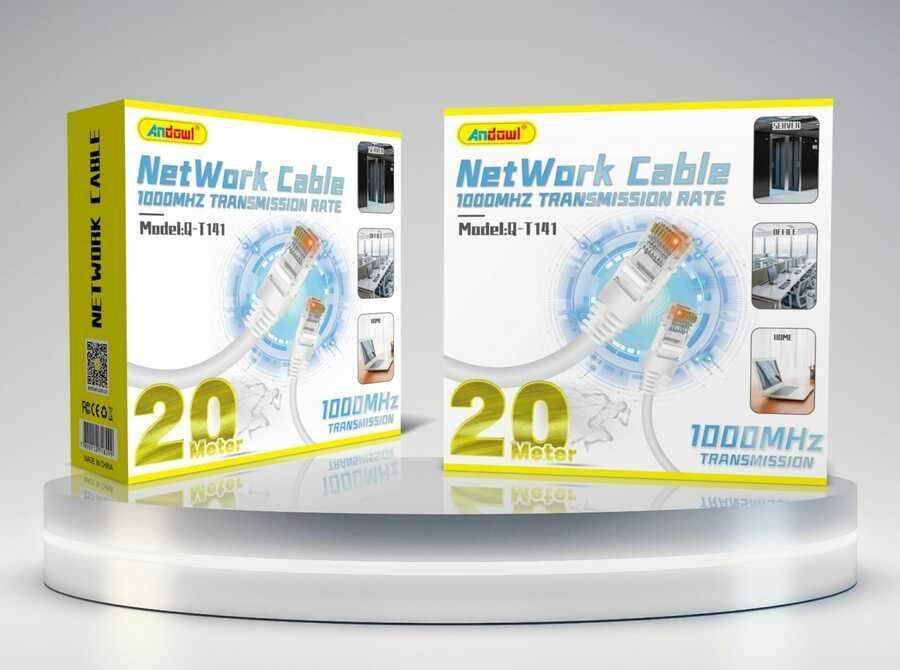 AnDswl Ethernet Cable 20 Meter 1000Mhz Transmission Rate Shielded Pure Copper PVC Jacket Computer Network Cable
