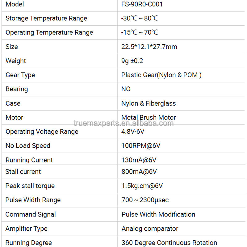 เซอร์โวหมุนต่อเนื่อง 360 องศาแบบอนาล็อก FS90Rสินค้า