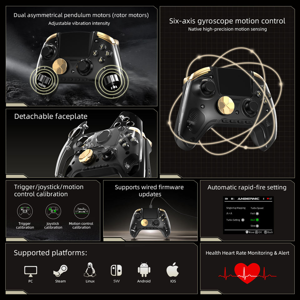 Anbernic G01จอยควบคุมเกมไร้สายพร้อมจอ2.5D IPS, จอยสติ๊กมอเตอร์เกมแพดมอเตอร์แบบสั่นสำหรับ PC NS NS2 Android IOS