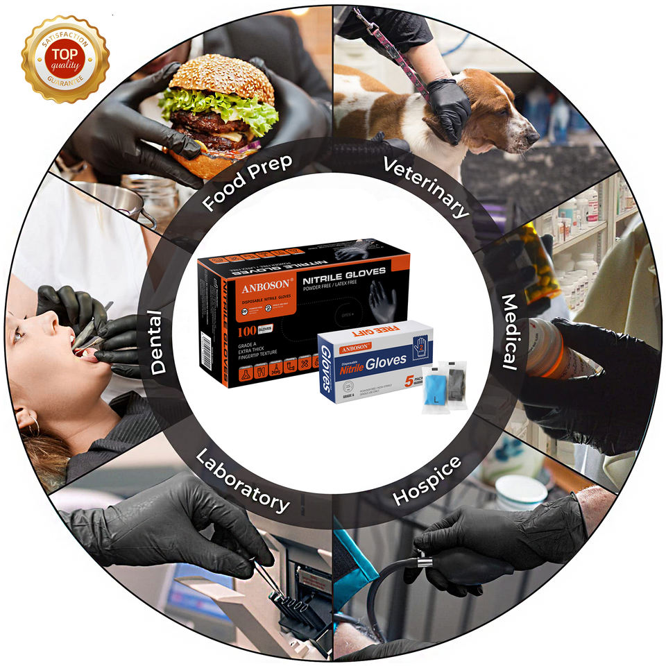 ถุงมือไนไตรล์ Anboson 5mil แบบมีลายกันลื่น ปราศจากน้ำยาง สำหรับใช้ในงานอาหารและร้านเสริมสวย