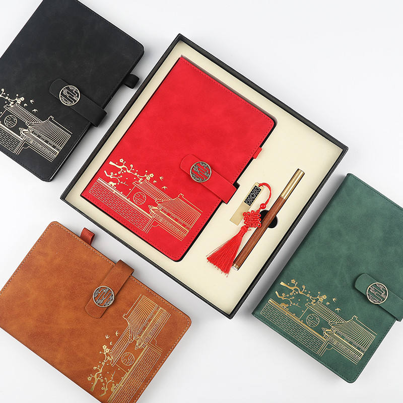 สมุดบันทึกหนังสไตล์จีนโบราณ ไร้สาย เข้าเล่มแบบสมบูรณ์แบบ ปั๊มนูน พิมพ์ลาย ทำด้วยมือ สำหรับธุรกิจ สำนักงาน สมุดบันทึกประจำวัน กล่องของขวัญ