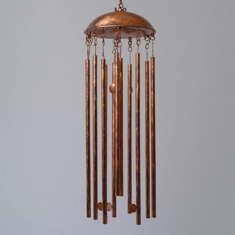 กระดิ่งลมเหล็กแบบโบราณสร้างขึ้นมาเทคนิคดั้งเดิมที่สามารถเคลื่อนย้ายการออกแบบอาร์ตเดคโคให้เสียงไพเราะแบบชนบท