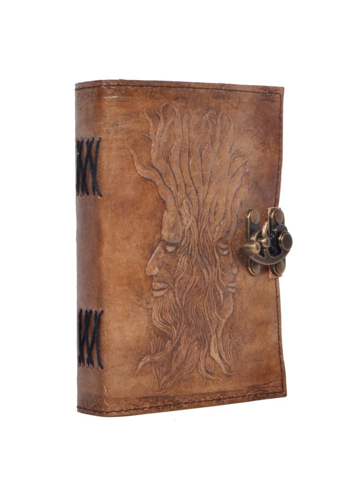 สมุดโน้ตปกแข็งลายนูนหนังแท้ลายคนแก่โบราณพร้อมตัวล็อคทองเหลืองโบราณสำหรับไดอารี่การเดินทางวางแผนประจำวัน