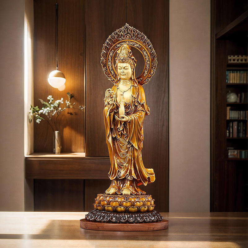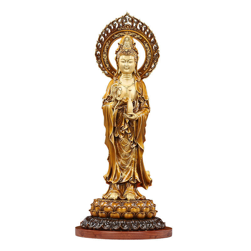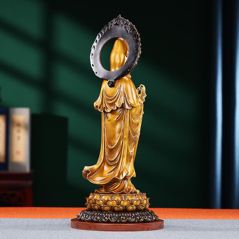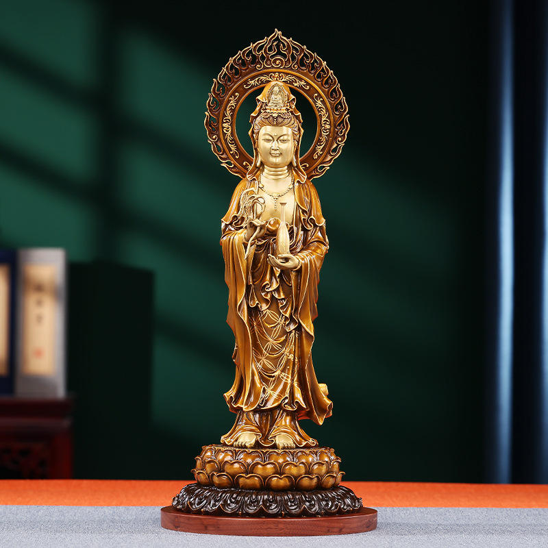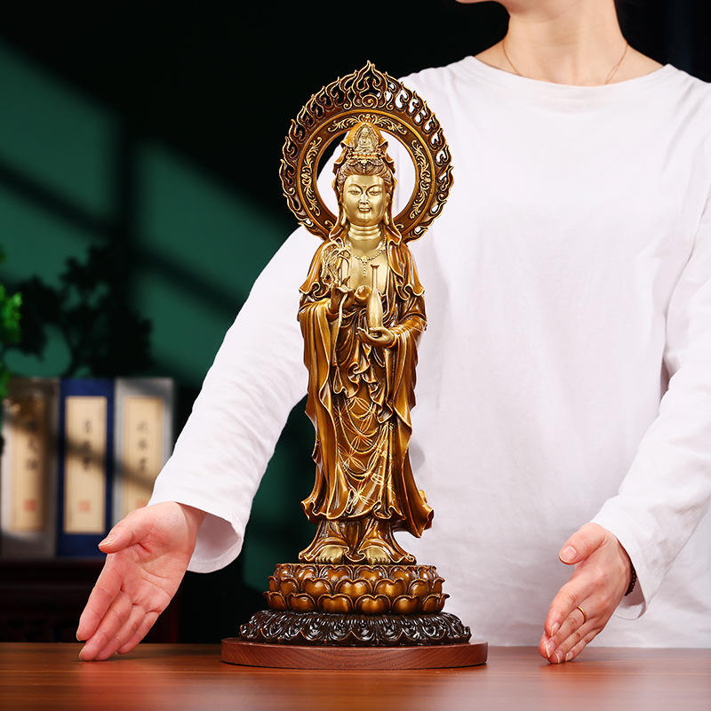 Ancient Tea Set Statues Brass Guanyin Ornaments & Figures Cut Gold Finish for Home Furnishings
