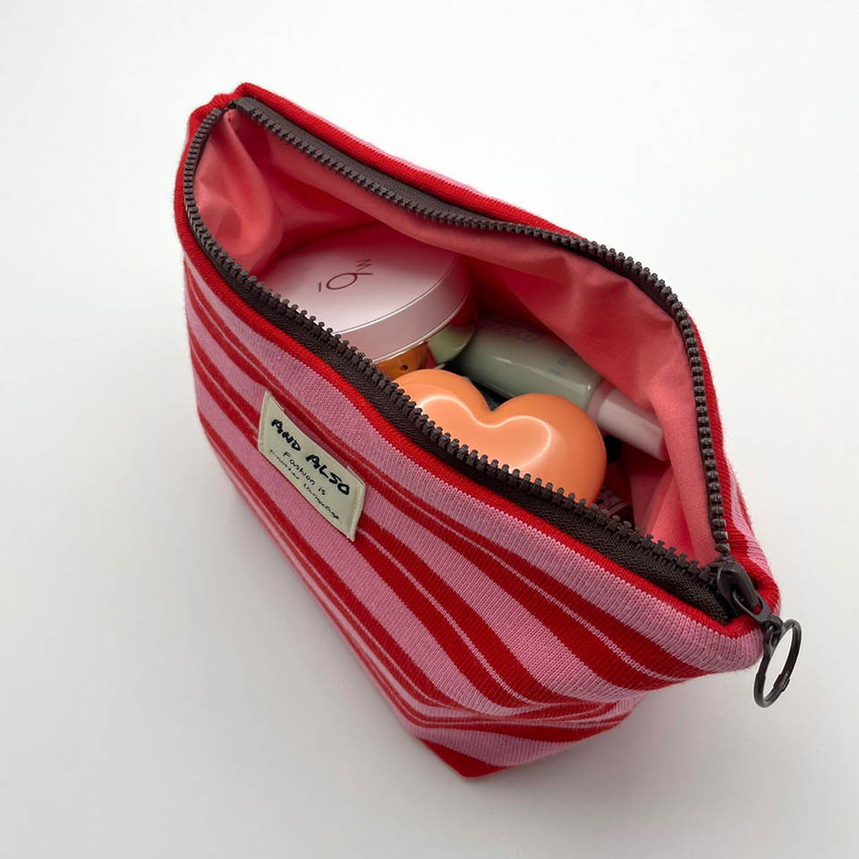 [และยัง] กระเป๋าเครื่องสำอางลายทางน้ำหนักเบาอเนกประสงค์สำหรับการเดินทางกระเป๋าจัดระเบียบแบบพกพาสำหรับสิ่งจำเป็นในชีวิตประจำวันและการแต่งหน้า