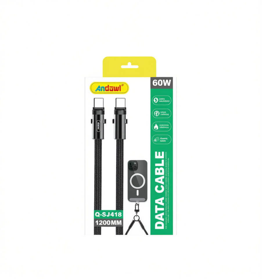 Andawl Nickel Plated Metal Data Cable Type-C to Type-C 1200mm Braided Fast Charging for Mobile Charging Q-SJ418