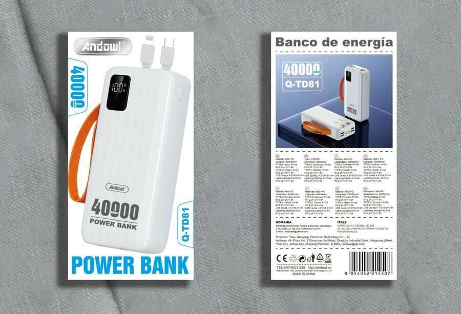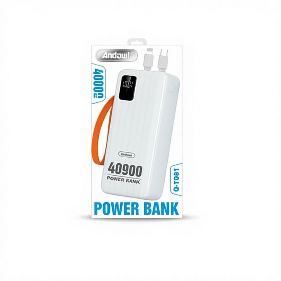 แบตเตอรี่สำรองพลาสติก Andawl Li-Polymer ความจุ 40900 มิลลิแอมป์ชั่วโมง 40 วัตต์ ชาร์จเร็ว พร้อมสายเคเบิล Type C หน้าจอ LED รุ่น Q-TD81