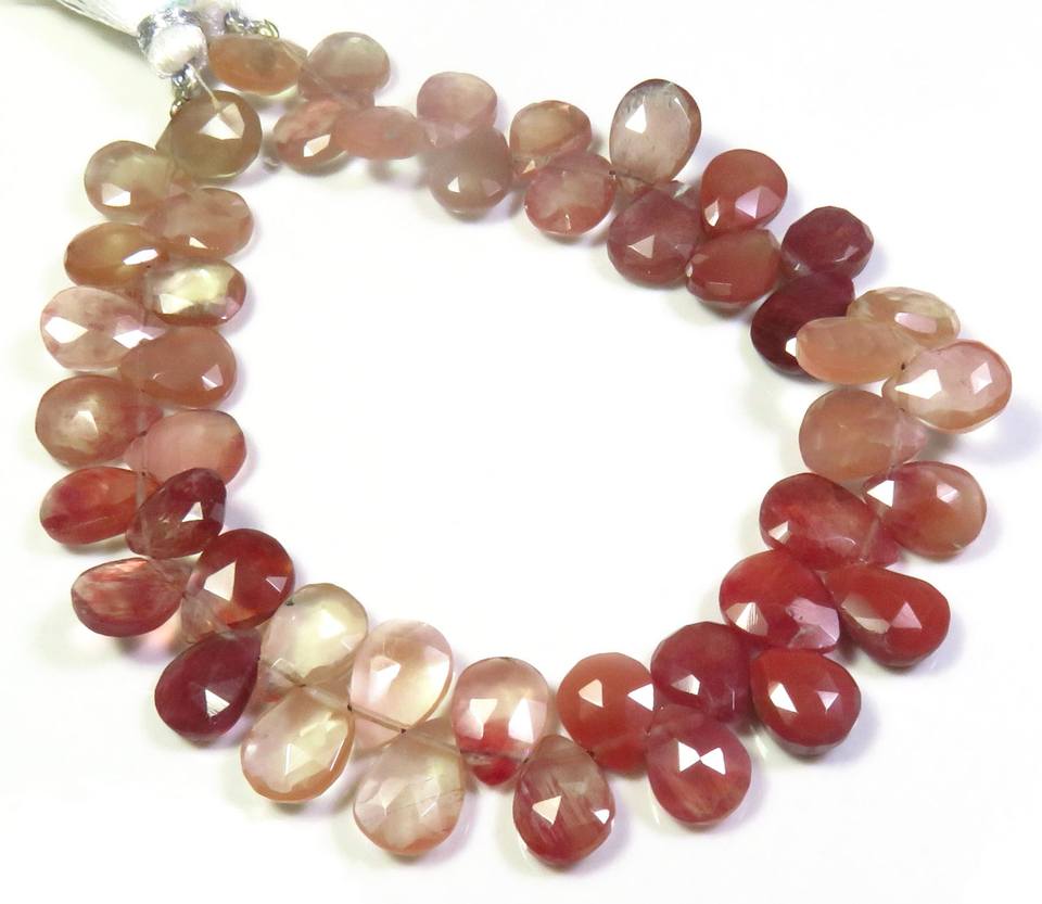 ลูกปัดลูกแพร์เจียระไน9-11.5มม. ลูกปัดลาบราดอไรต์สีแดงธรรมชาติขนาด8"