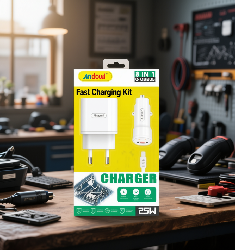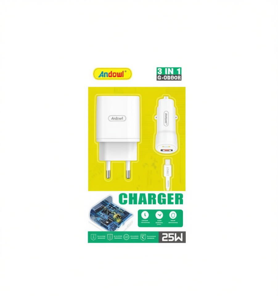Andowl 3 in 1 25W ชุดชาร์จเร็ว12-24V สำหรับรถยนต์และบ้าน USB Type A G-OBBOR