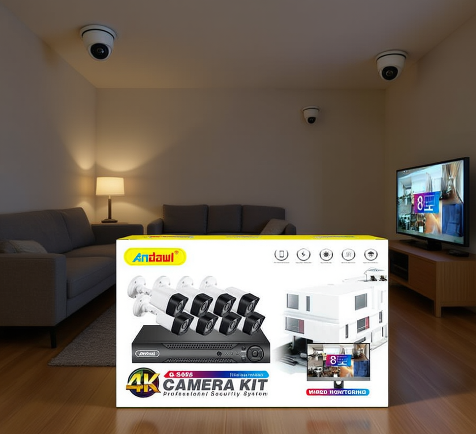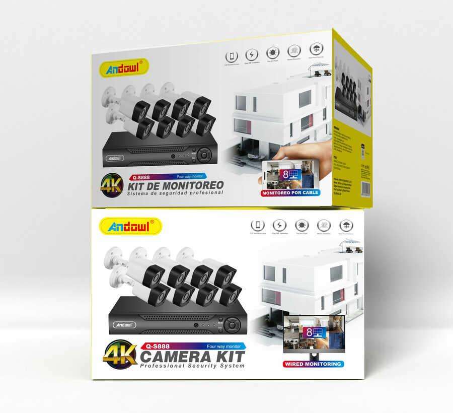 Andowl 4K Camera Kit O-5888 H.265 Video Monitoring System with CMOS Sensor Micro SD Card for Output for Home Security