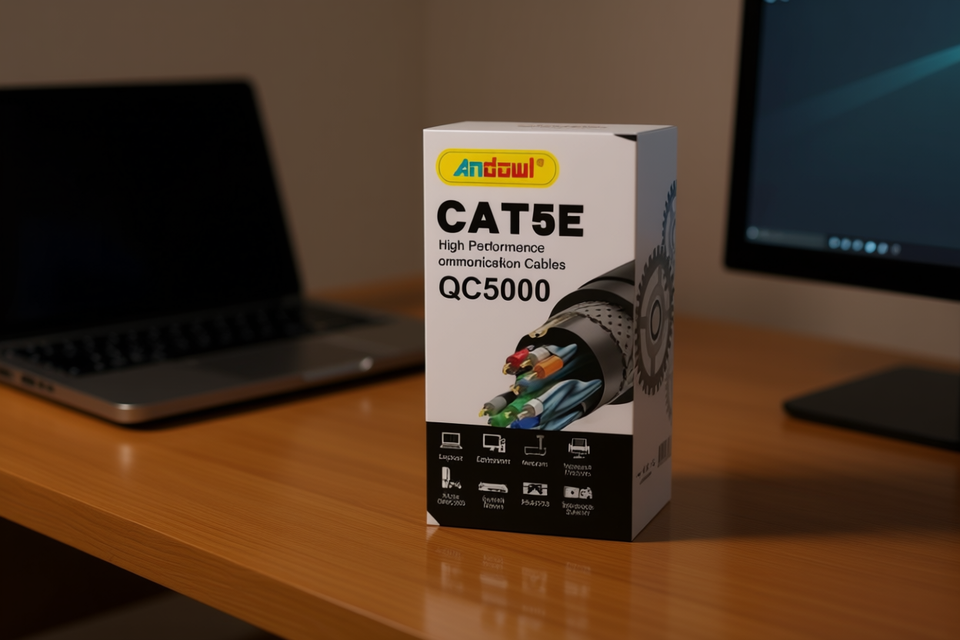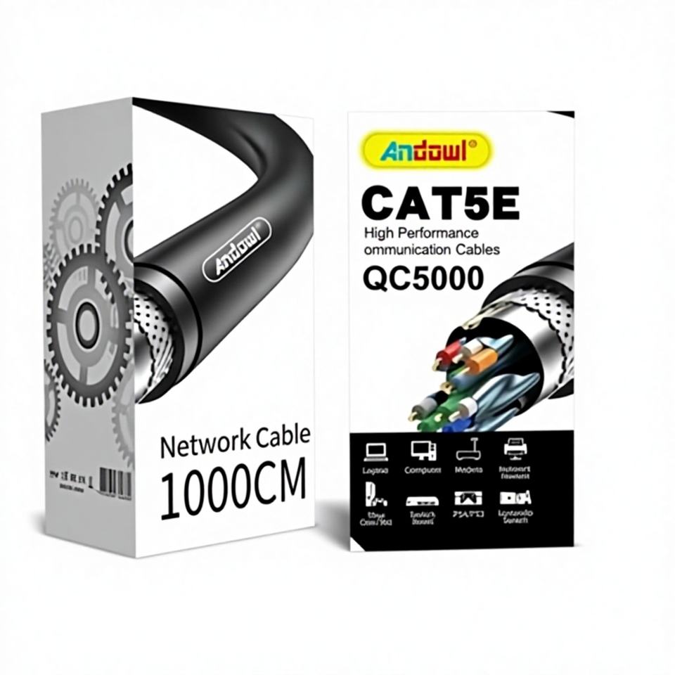 Andowl Cat5e Ethernet Cable QC5000 Shielded Pure Copper Nickel Plated Connectors Black Jacket Computer Network Communication
