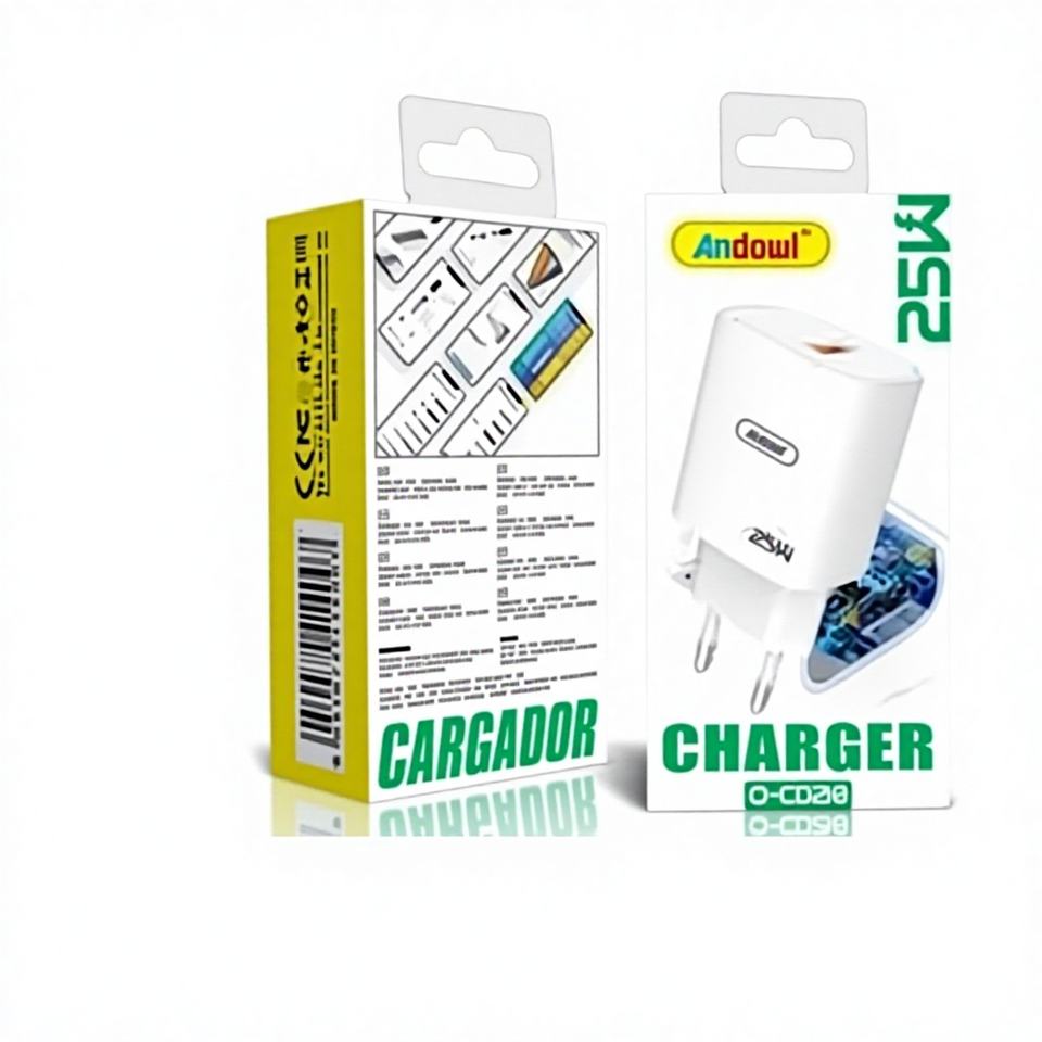 ที่ชาร์จ Andowl 25W QC3.0 1 พอร์ต USB สำหรับโทรศัพท์มือถือ วัสดุทนไฟเป็นมิตรกับสิ่งแวดล้อม ป้องกันกระแสเกิน รองรับแรงดันไฟฟ้าเข้า 100-240V