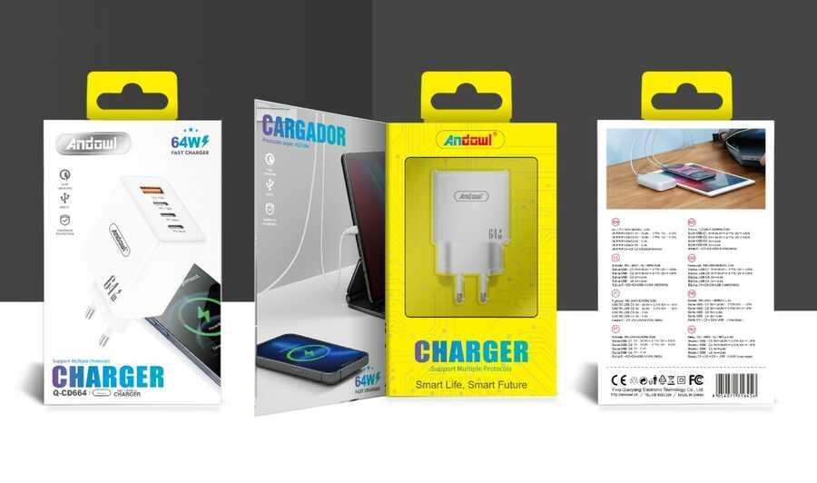 Andowl Charger 64W 1 USB QC3.0 For Mobile Phone With Magnetic Wireless Charging PC Fireproof Material