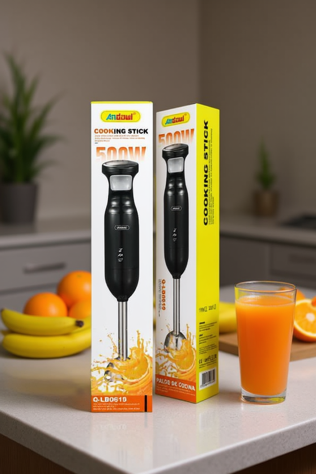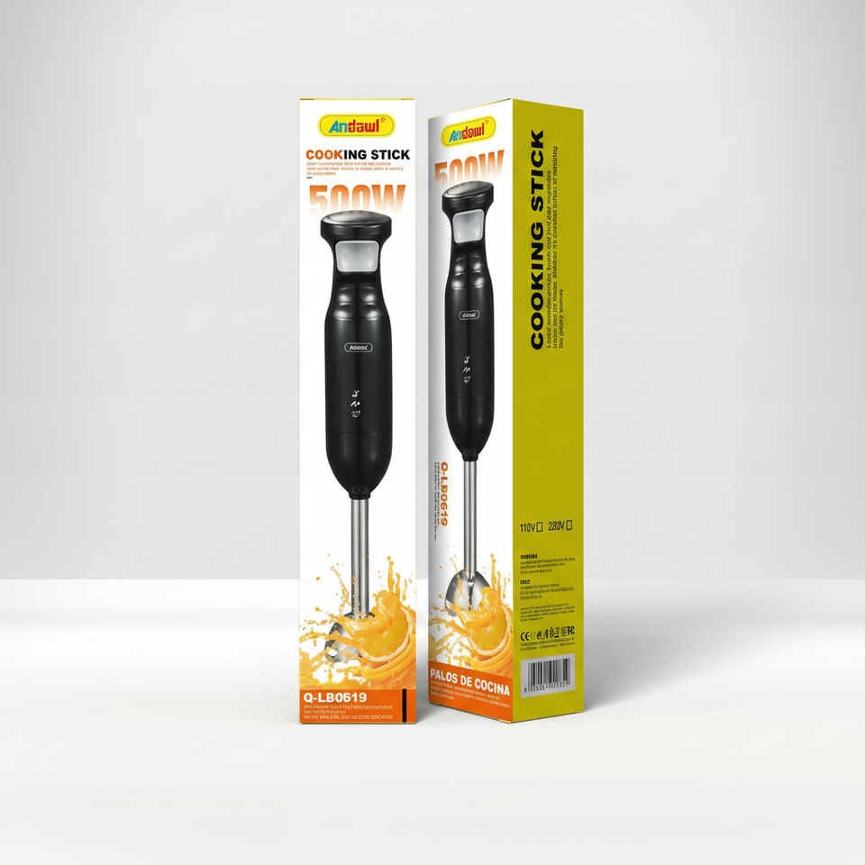 แอนดอล คุกกิ้ง สติ๊ก เบลนเดอร์ 500W เครื่องผสมอาหารแบบมือถือ ปุ่มกด 2 ระดับความเร็ว ใบมีดสแตนเลส สำหรับผสมและบด Q-LB0619