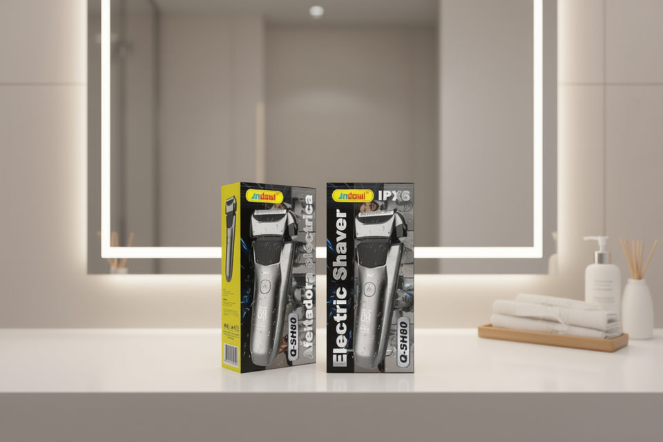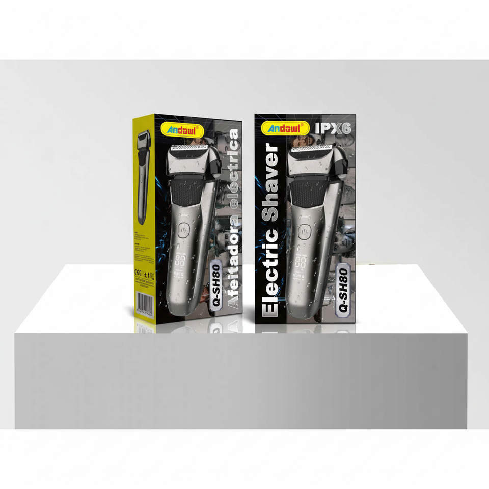 เครื่องโกนหนวดไฟฟ้า Andowl รุ่น Q-Sh80 กันน้ำ IPX6 ตัวเครื่องโลหะ ชาร์จไฟได้ ใช้งานได้นาน 120 นาที สำหรับผู้ชาย กำจัดขนบนใบหน้า ใช้ในครัวเรือน