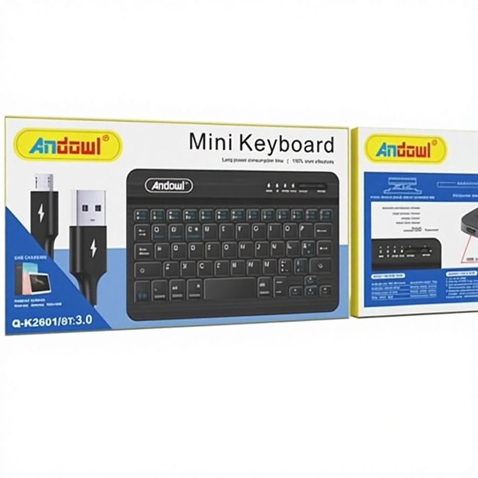 คีย์บอร์ดขนาดเล็ก Andowl รุ่น Q-K2601/BT.3.0 คีย์บอร์ดไร้สายแบบยาง แขวนได้ ใช้กับคอมพิวเตอร์