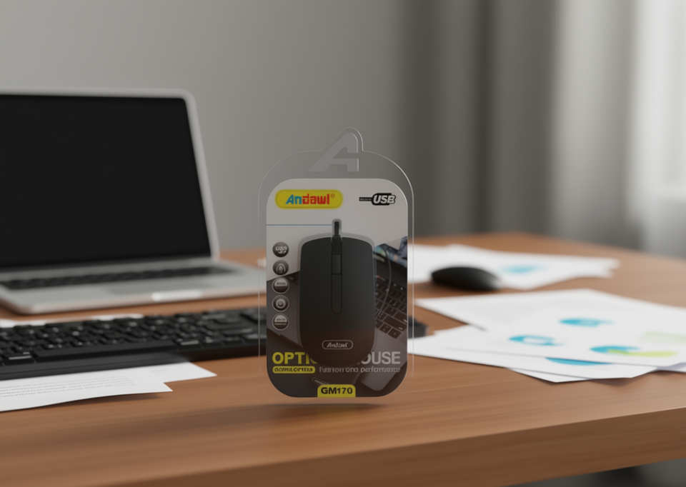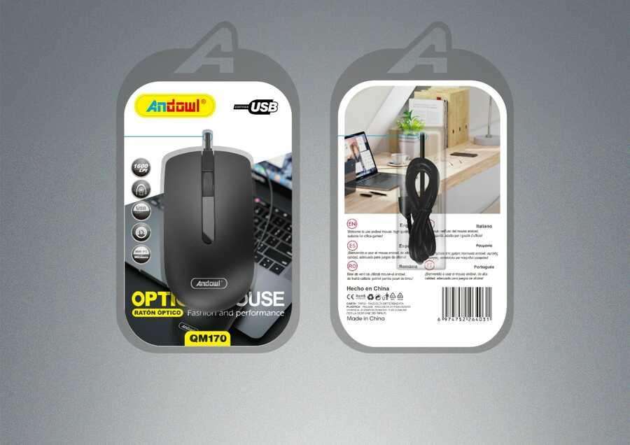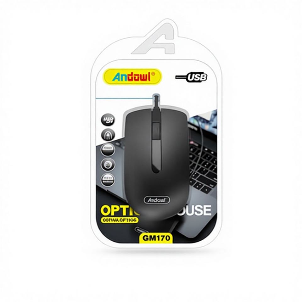 เมาส์ออปติคอล Andowl GM170 USB สำหรับคอมพิวเตอร์ตั้งโต๊ะ สำหรับคนถนัดขวา 3 ปุ่ม เซ็นเซอร์ออปติค มีสินค้าในสต็อก