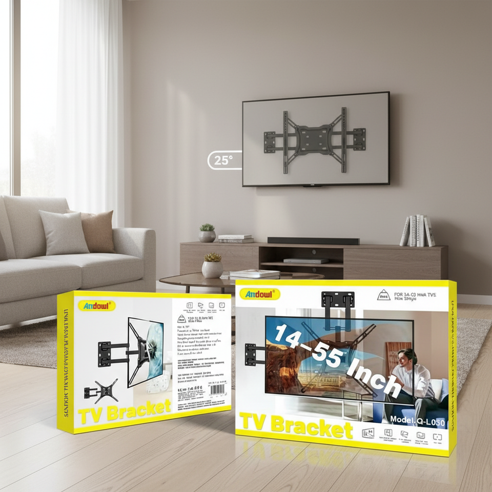 ขายึดทีวี Andowl ได้รับการรับรองมาตรฐาน CE ขนาด 14-55 นิ้ว วัสดุโลหะ ปรับเอียงได้ 25 องศา รองรับมาตรฐาน VESA สำหรับติดตั้งบนผนัง