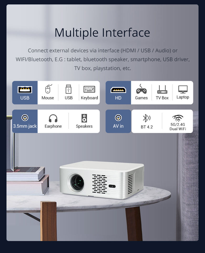โปรเจคเตอร์โฮมเธียเตอร์ Android 10.0 | ถอดรหัส1080P + 4K | WiFi แบบดูอัลแบนด์สำหรับคืนชมภาพยนตร์